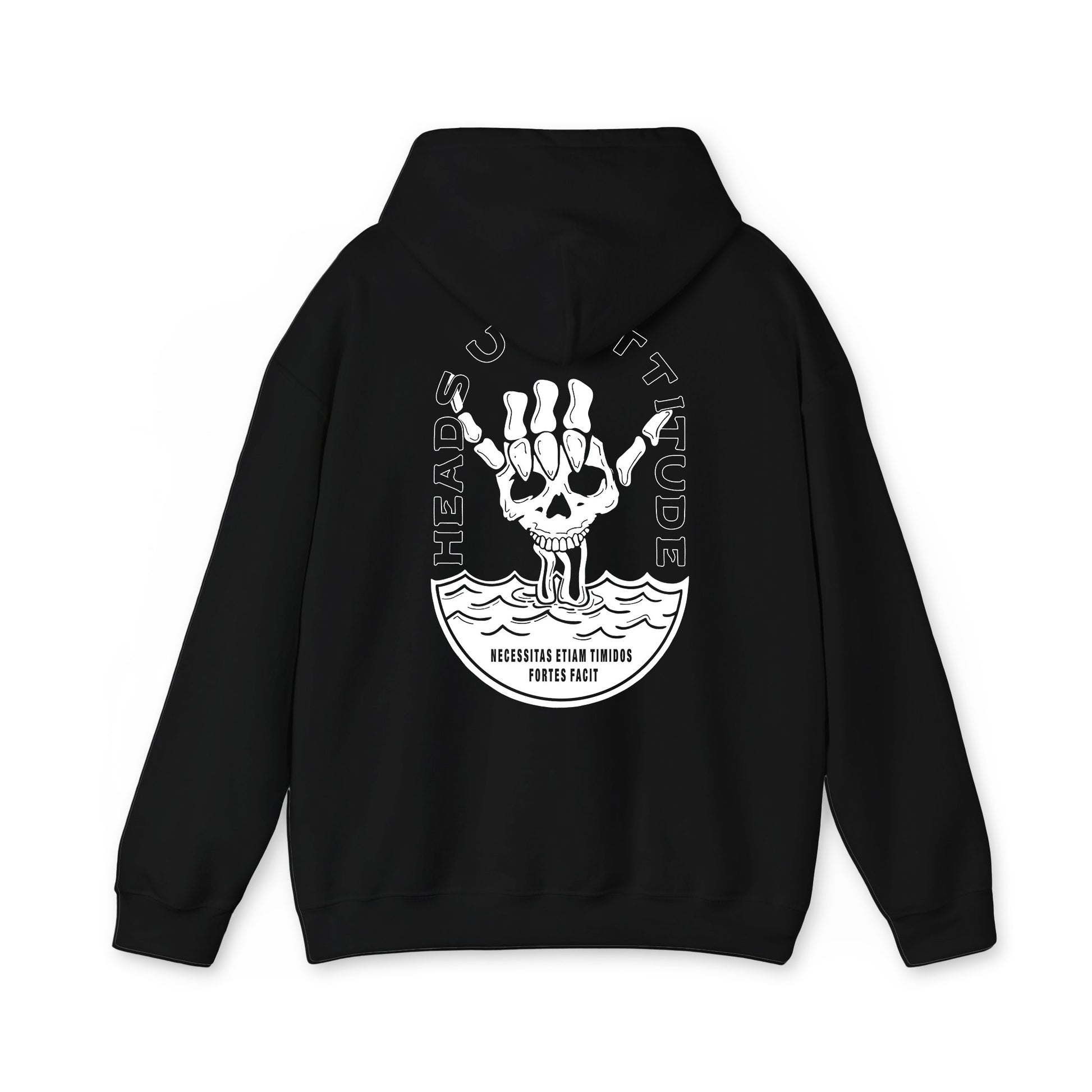 Below the waterline, everything changes. This hoodie is for those who know that even the calmest sea can present the gravest dangers. If you're wondering what the heck it says in the waves - "Necessitas etiam timidos fortes facit," translates to "Need makes even the timid brave." Because there is no room for errors or fear in this line of work. Get yours now and dive into your next adventure with the "Heads Up" Hoodie.